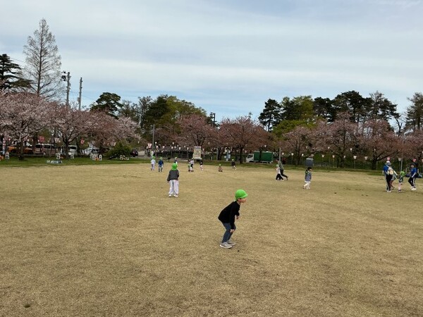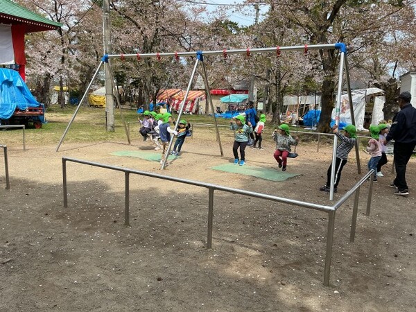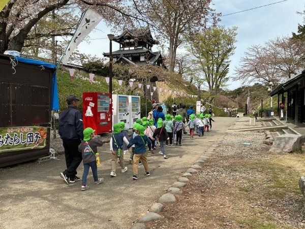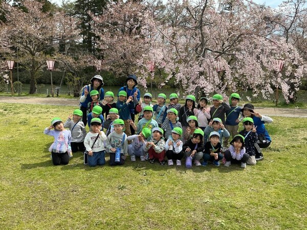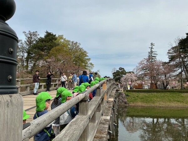 | 4月13日(月)、ゆり組が園外保育で高田城址公園へお花見に行きました。 とても楽しみにしていたお花見でしたが、10日(金)はあいにくの雨となってしまい13日に延期となりました。 会場に着くと、友達と手をつないで極楽橋を渡り桜を見たり、たくさん並んでいる屋台の前を通り「おいしそう!」などと言いながら楽しく歩きました。 公園内の遊具で遊んだり、芝生公園でたくさん走ってきました。 今年は開花も早く、満開の時期は少し過ぎてしまいましたが、きれいに咲く桜を見れたゆり組さんは、とても嬉しそうな表情を見せてくれました。 |