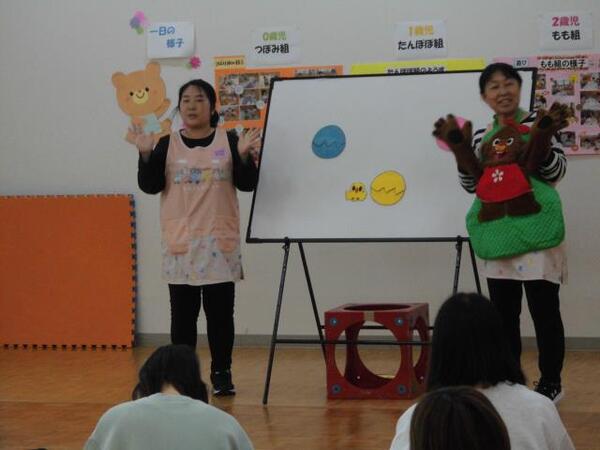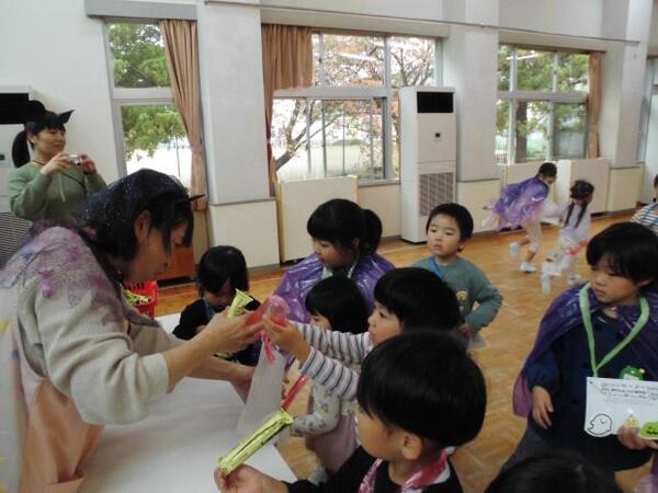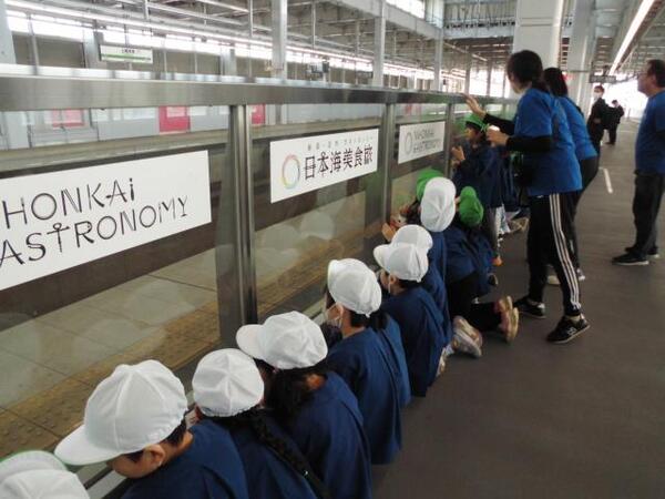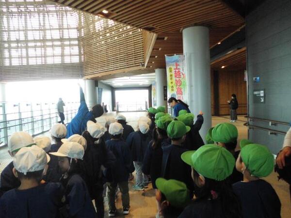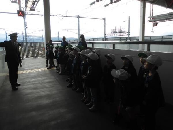 | 11月6日(木)、ゆり組が、園外保育で上越妙高駅に行ってきました。 駅員さんから新幹線について色々と説明してもらったり、質問にも答えてもらったゆり組さん。 いよいよホームに「はくたか」が到着すると、子ども達は大喜び!!ブレーキの音が大きくてびっくりする子もいましたが、運転手さんが手を振ってくれたり、出発時に汽笛を鳴らしてくれ大興奮でした。また、上越妙高駅を通過する「かがやき」も見ることができ、その速さにみんなびっくりしていました。 最後はお土産も頂いて充実した園外保育になりました!! |