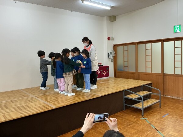 | 3月18日(水)、ゆり組さんのお別れ会がありました。 先生クイズをしたり、つぼみ組からの思い出をスライドショーで振り返ったりと盛り上がりました。インフルエンザの流行で全園児でゆり組さんを送り出すことができなかったのですが、すみれ組の代表者からちゅうりっぷ組・すみれ組が作ったペン立てをプレゼントしました。そして、ゆり組さんから、素敵な歌をプレゼントしてもらいました。 お昼ご飯は、各クラスで美味しいお弁当を食べました! ゆり組さん、たくさん遊んでくれてありがとう♡小学校に行っても頑張ってね!! |
